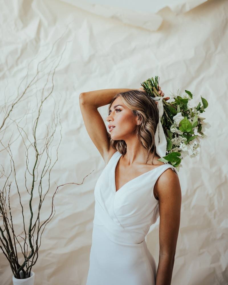 “Alexandria is the definition of effortlessly elegant. She’s sleek, modern, and has just enough detail to keep things interesting—without ever trying too hard. The crossover bodice is super flattering (trust me, it looks amazing on everyone), and the wide straps and V-neckline give you that timeless bridal energy with a modern twist. The crepe fabric hugs in all the right places, and the lace hem adds a little unexpected romance. She’s the kind of gown that feels comfortable, looks stunning, and will have you glowing from aisle to dance floor.”