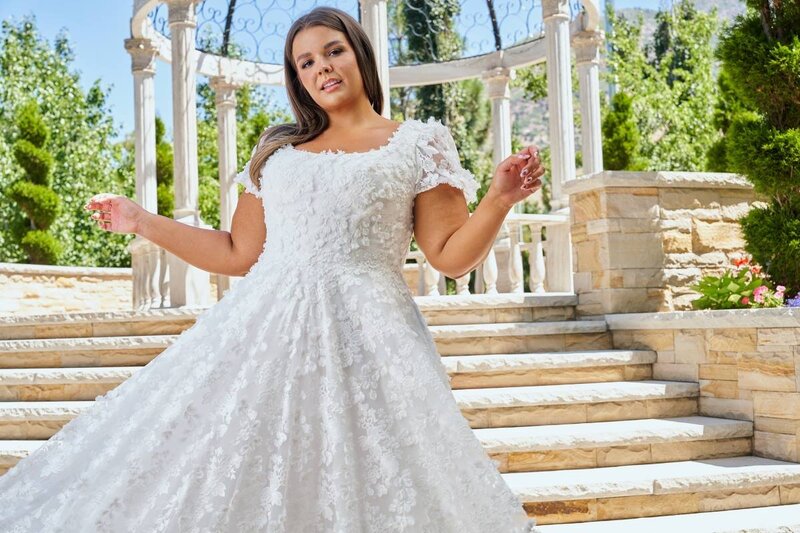 "Fiori has captured hearts everywhere—and it’s easy to see why. This romantic A-line gown is covered in soft, 3D floral lace that gives it a dreamy, dimensional texture from every angle. The signature puff sleeves bring a playful, vintage-inspired charm, while the silhouette stays timeless and universally flattering. Lightweight and full of movement, Fiori is designed for the bride who wants to feel effortlessly beautiful, a little whimsical, and completely unforgettable."