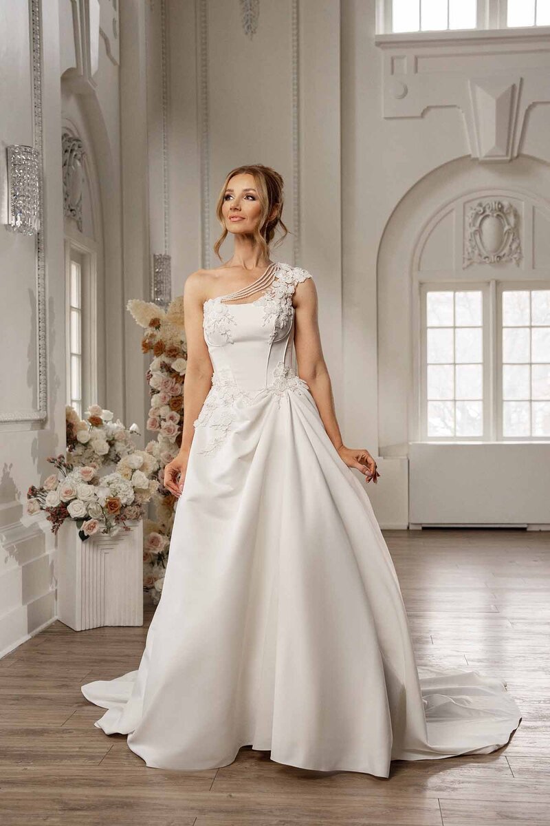 “Mira is all about those special little details that make you feel one-of-a-kind. Every piece of her is designed to stand out in the prettiest, most romantic way. She’s got exposed boning placed right where the princess seams would be, so you get that snatched, corset-inspired shape but still feel light and delicate. The floral lace appliqués on the hips and across the top of the bodice? So good. They soften everything up and add that dreamy, garden feel.