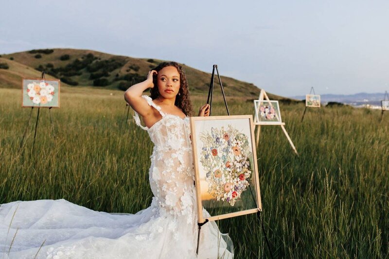And those 3D appliques? Unreal. They add so much texture and detail—it seriously looks like flowers blooming right off the gown.